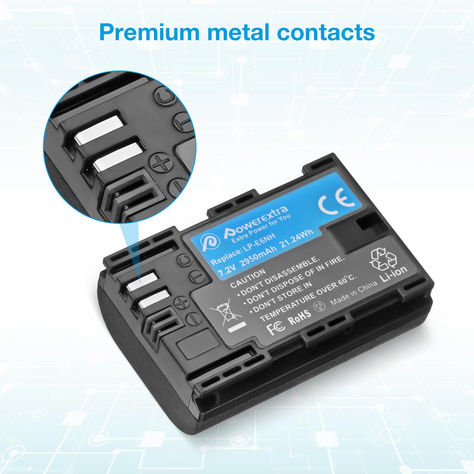 Powerextra LP-E6NH Batteries 2950mAh For Canon LP-E6NH R5 R6 90D 60D 70D 80D 5D II 5D III 5DIV 5Ds 6D 6D II 7D 7D Mark II Cameras
