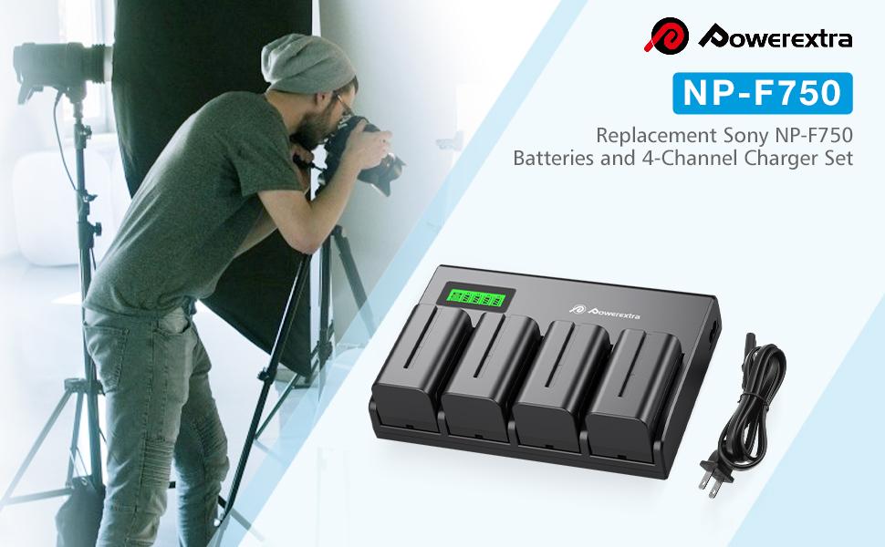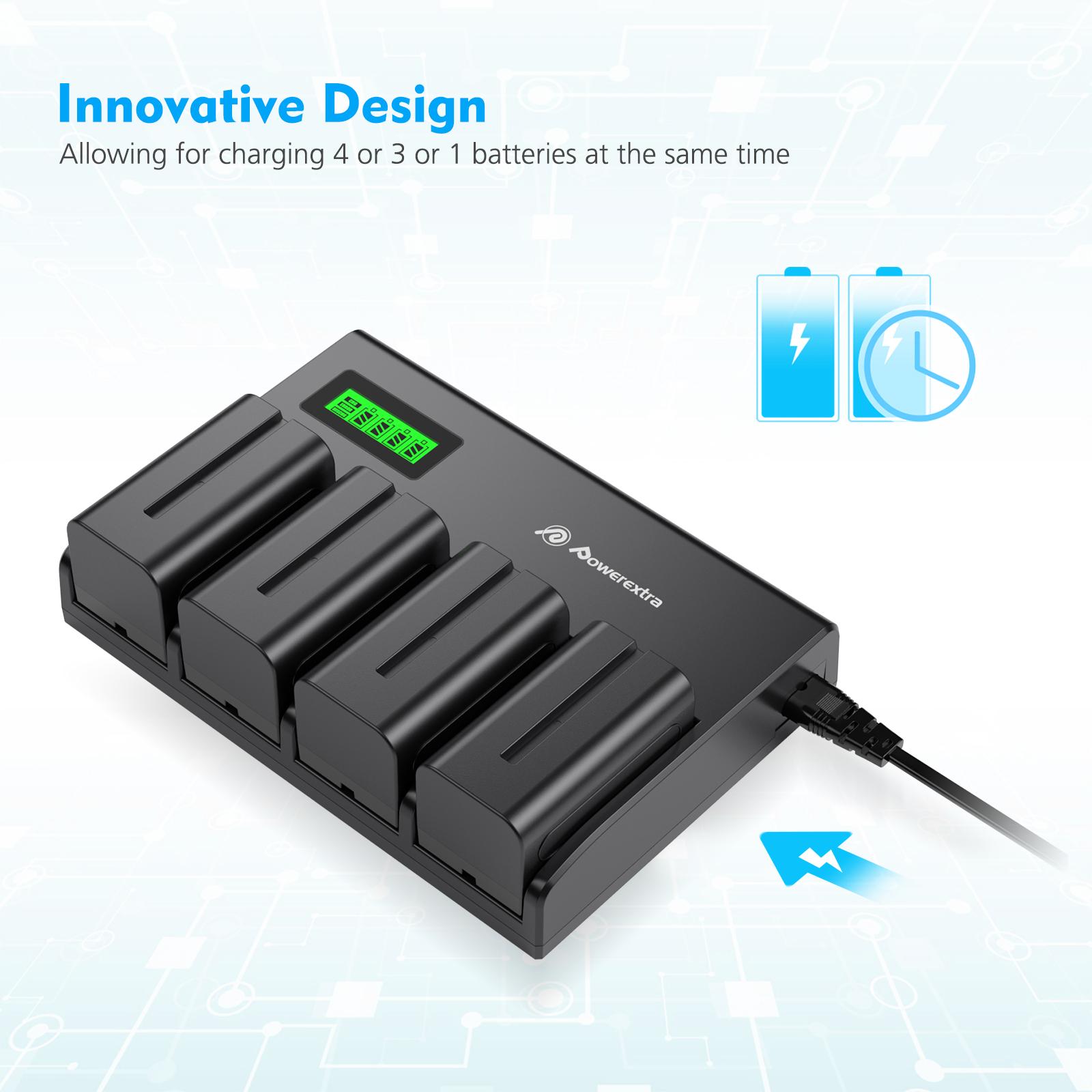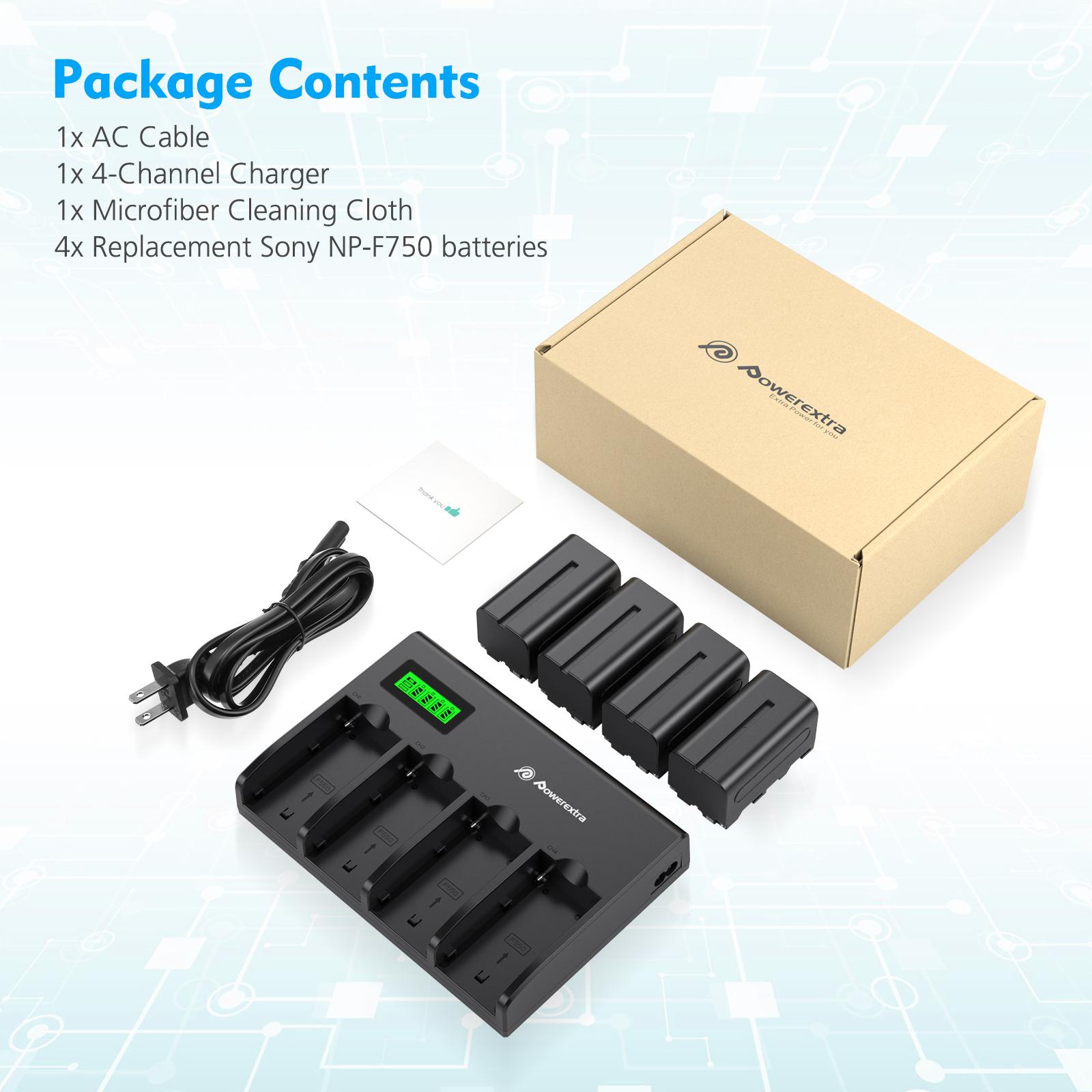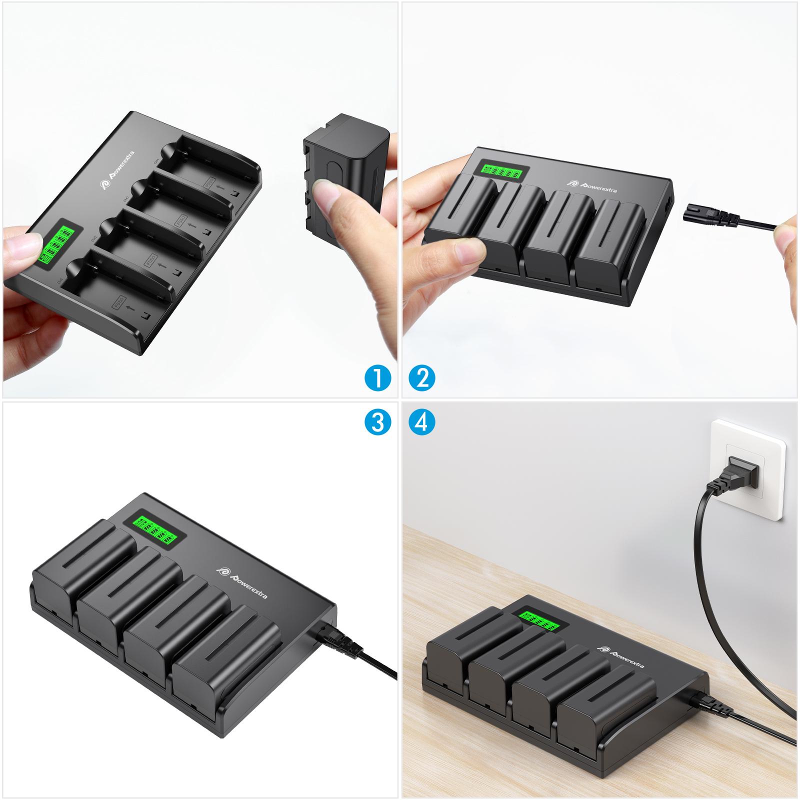 Powerextra 4 Pack Batteries and 4-Channel Charger For Sony NP-F970, NP-F960, NP-F950, NP-F930, NP-F770, NP-F750, NP-F570, NP-F550