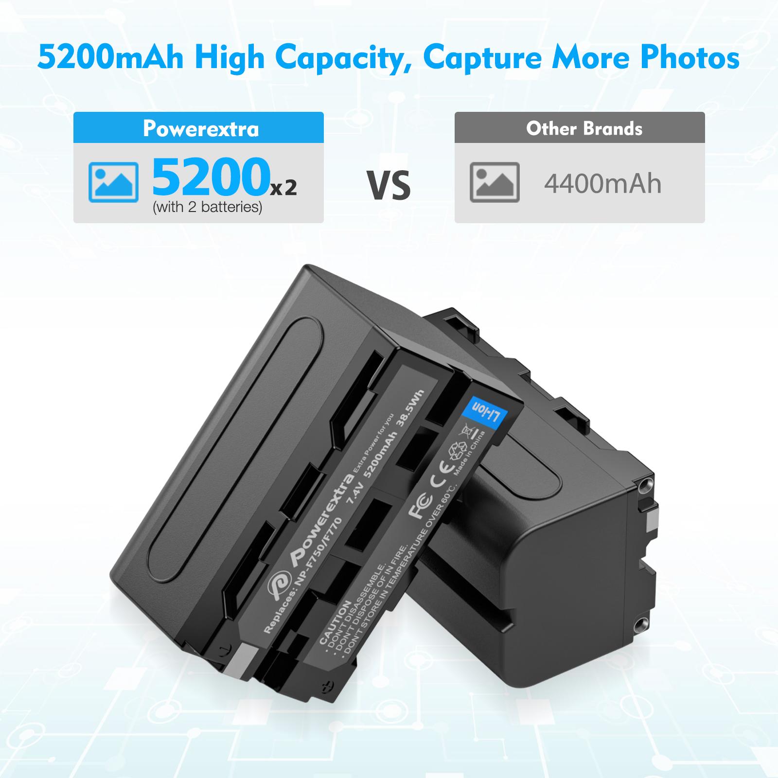Powerful Battery Capacity: Li-ion rechargeable battery 7.4V 8800mAh 65.12Wh, professional replacement for Sony NP-F970 battery. Premium Li-ion cells for longer battery life with no memory effect. It can provide enough powers to the flash light or shoot devices when you go out for a trip.