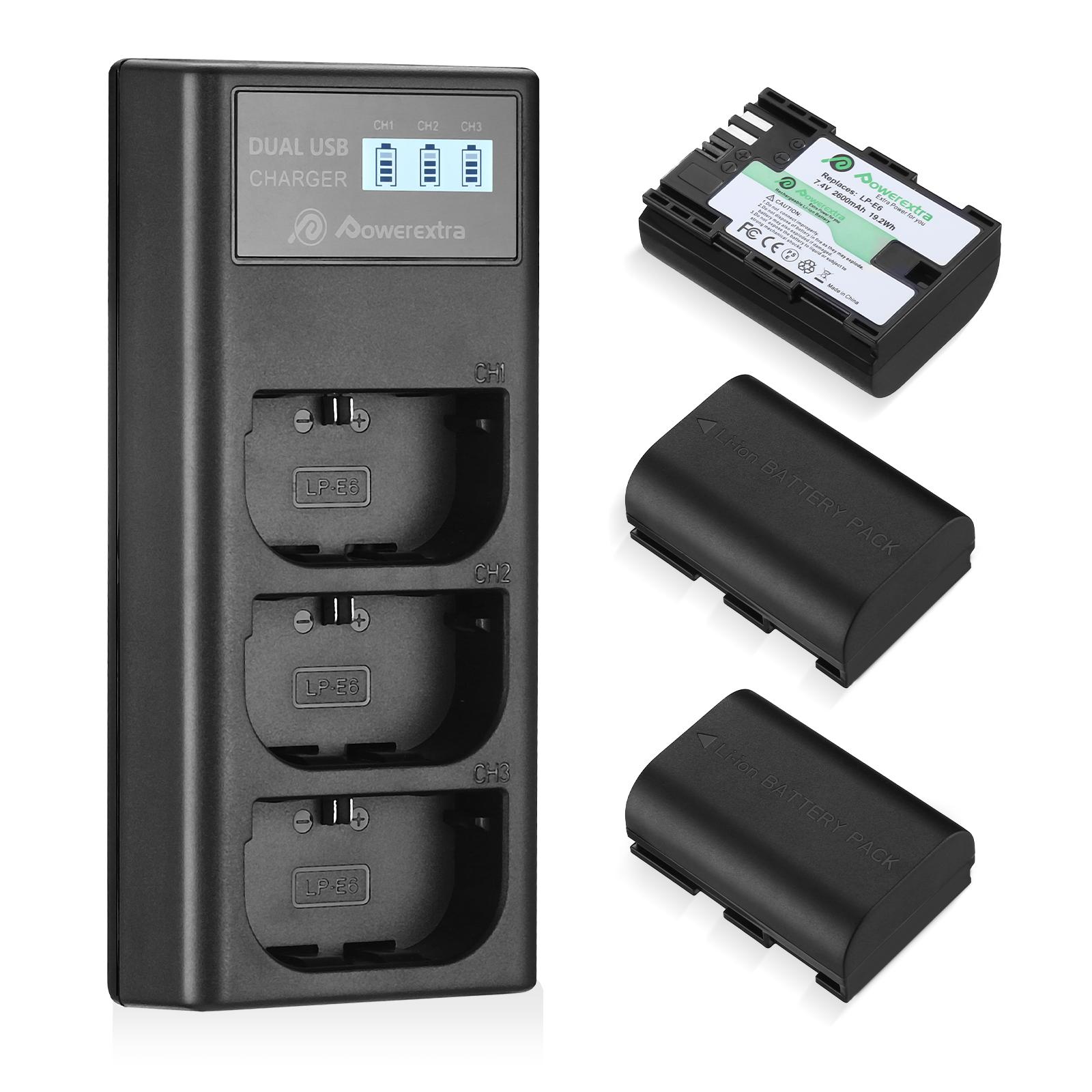 Powerextra 3 Pack LP-E6 LP E6N Rechargeable Battery For Canon 5D Mark II III IV 5DS 5DS R 6D 60D 6D Mark II 7D 7D Mark II70D