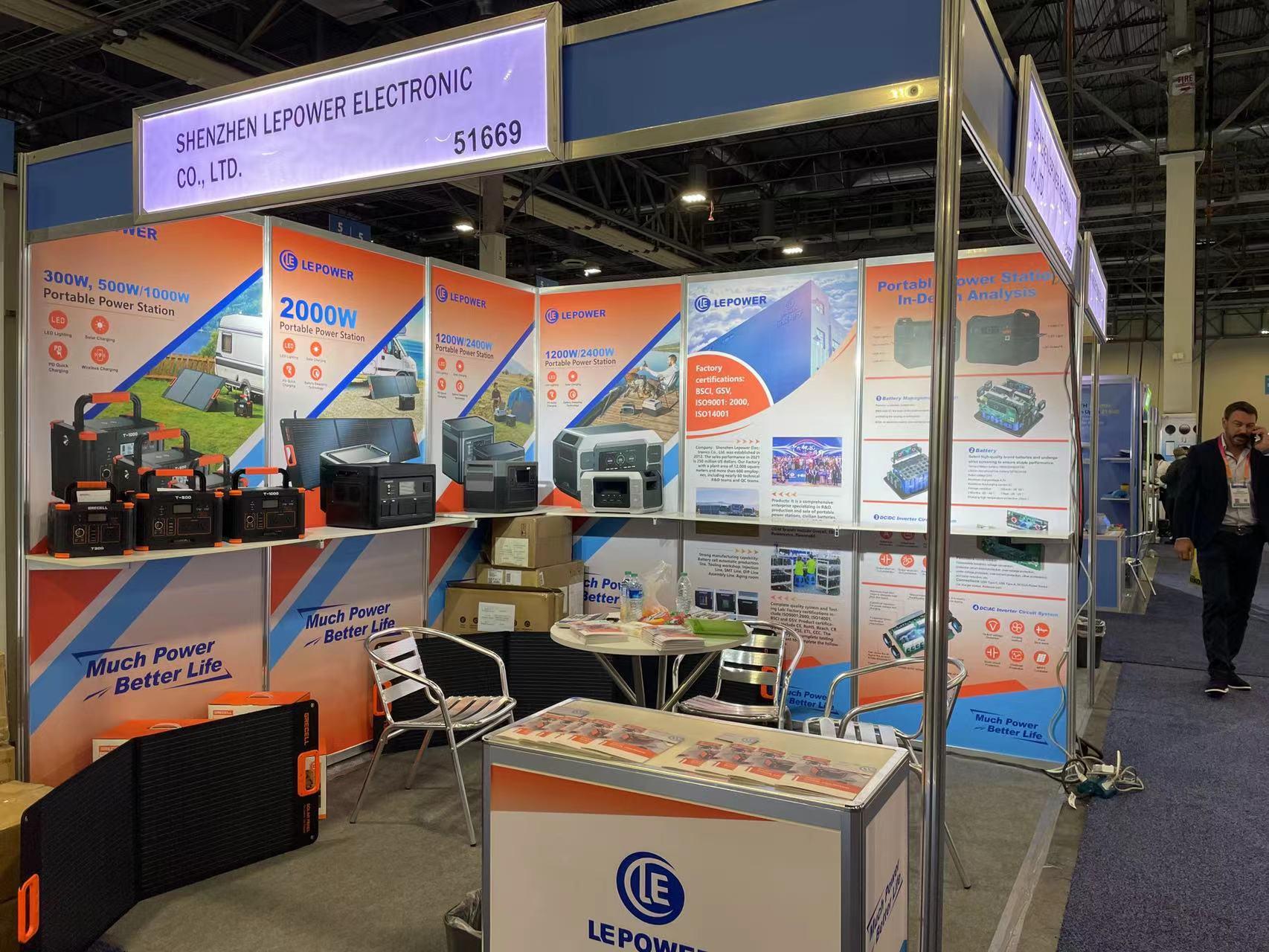 On January 8th we attended CES in Las Vegas, USA. This is our booth, Booth number 51669. Our main products are portable emergency solar power and foldable solar panels. Portable energy storage power supply has 300W/500W/1000W/1200W/2000W/2400W and other types of power, foldable solar panels are also divided into 100W/300W and other types.